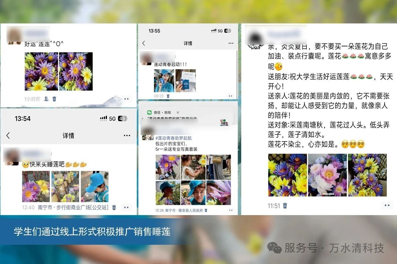 本次公益助学行动创新性地将生态农业、青少年成长与公益捐赠相结合。活动招募了 30 名刚刚接到录取通知书的隆安籍大学新生,他们将化身 “睡莲使者”,在县城内指定时间、地点销售睡莲鲜花。睡莲鲜花由万水清公司免费提供,卖花所得全部收入将作为个人助学金,直接转化为 “一对一” 的资助,助力学子们开启大学生活。